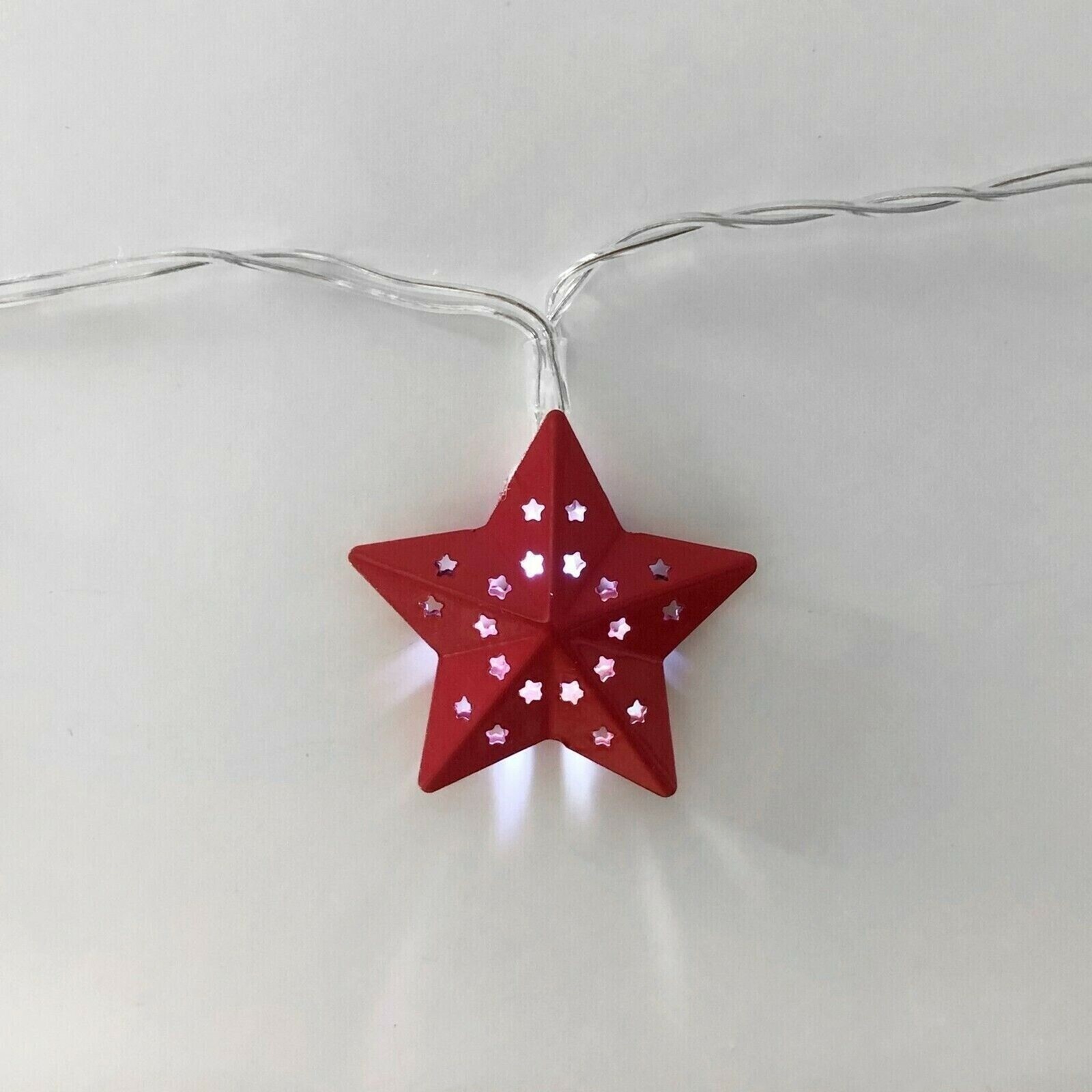 This 10-piece set features red, white, and blue LED lights enclosed in star-shaped metal casings.