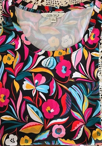 - Pioneer Woman ~ Short Sleeve ~ Boat Neck ~ Floral Black ~ LARGE Tee T-Shirt