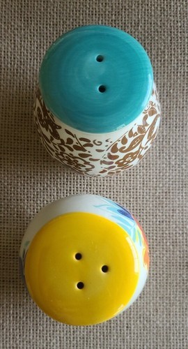 - Pioneer Woman ~ Stoneware ~ "Flea Market" Pattern ~ Salt & Pepper Shakers ~1