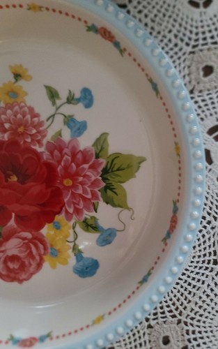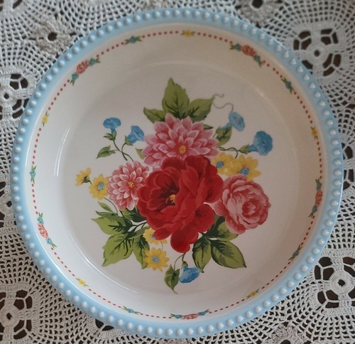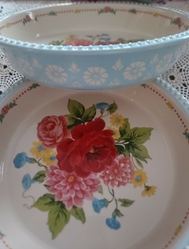 - Pioneer Woman ~ Sweet Rose Pattern ~ 9.5" Stoneware ~ Pie Plate ~ Dotted Edge