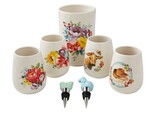 - Pioneer Woman Sweet Rose Stoneware Wine Set Chiller Cups Stoppers 7-Pc Gift NEW