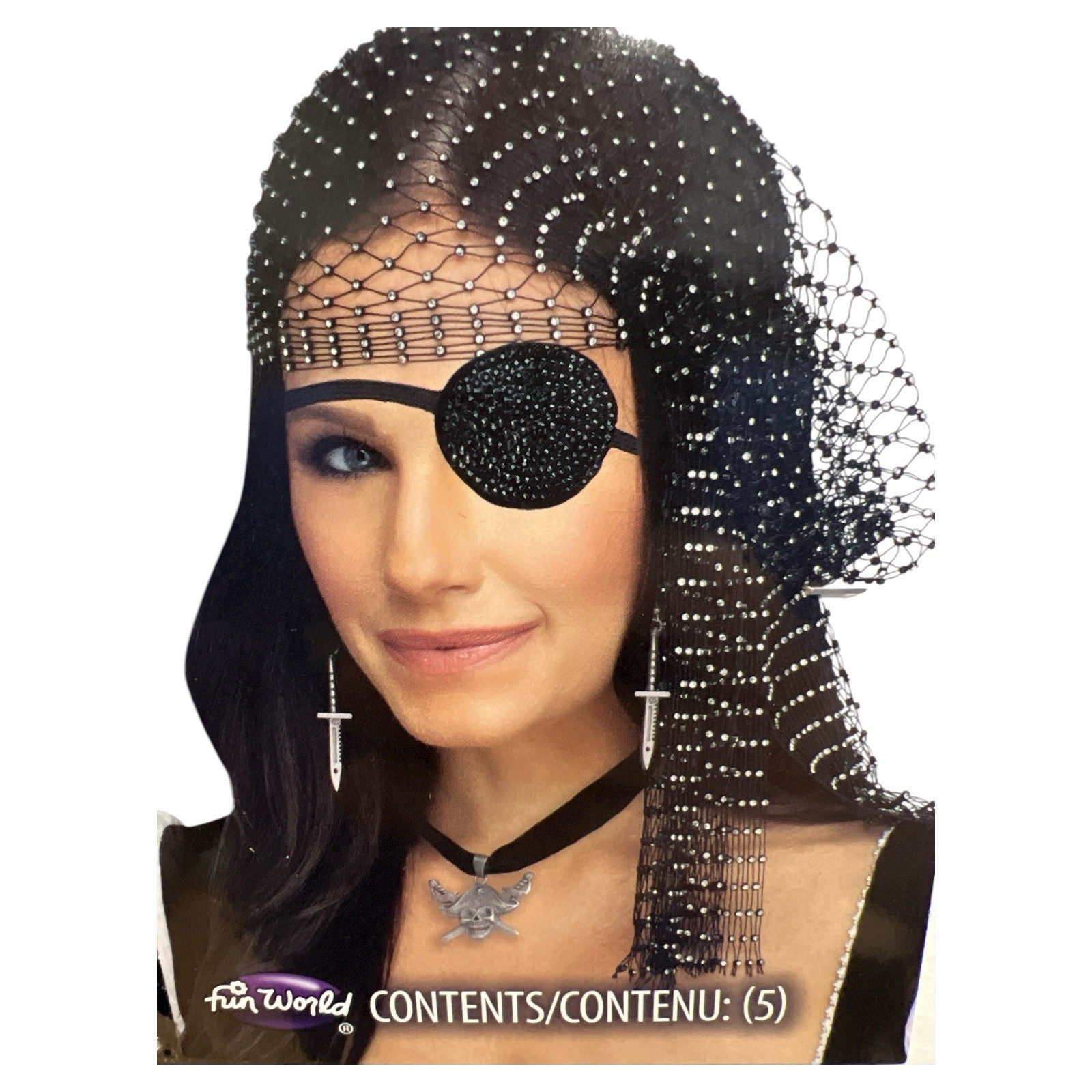 Pirate Costume Accessories Women Black Rhinestone Bling Kit Eyepatch Halloween