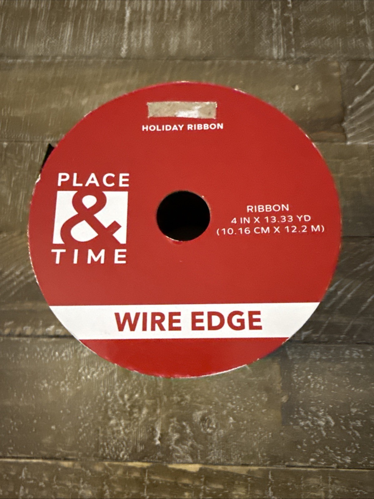 The product is a 4" x 13.33yd ribbon from the brand Place Time, colored green. This ribbon is versatile and can be used for various crafting projects, adding a touch of elegance and style to any creation. With its vibrant color and intricate design, this ribbon is sure to enhance any craft project and make it stand out.