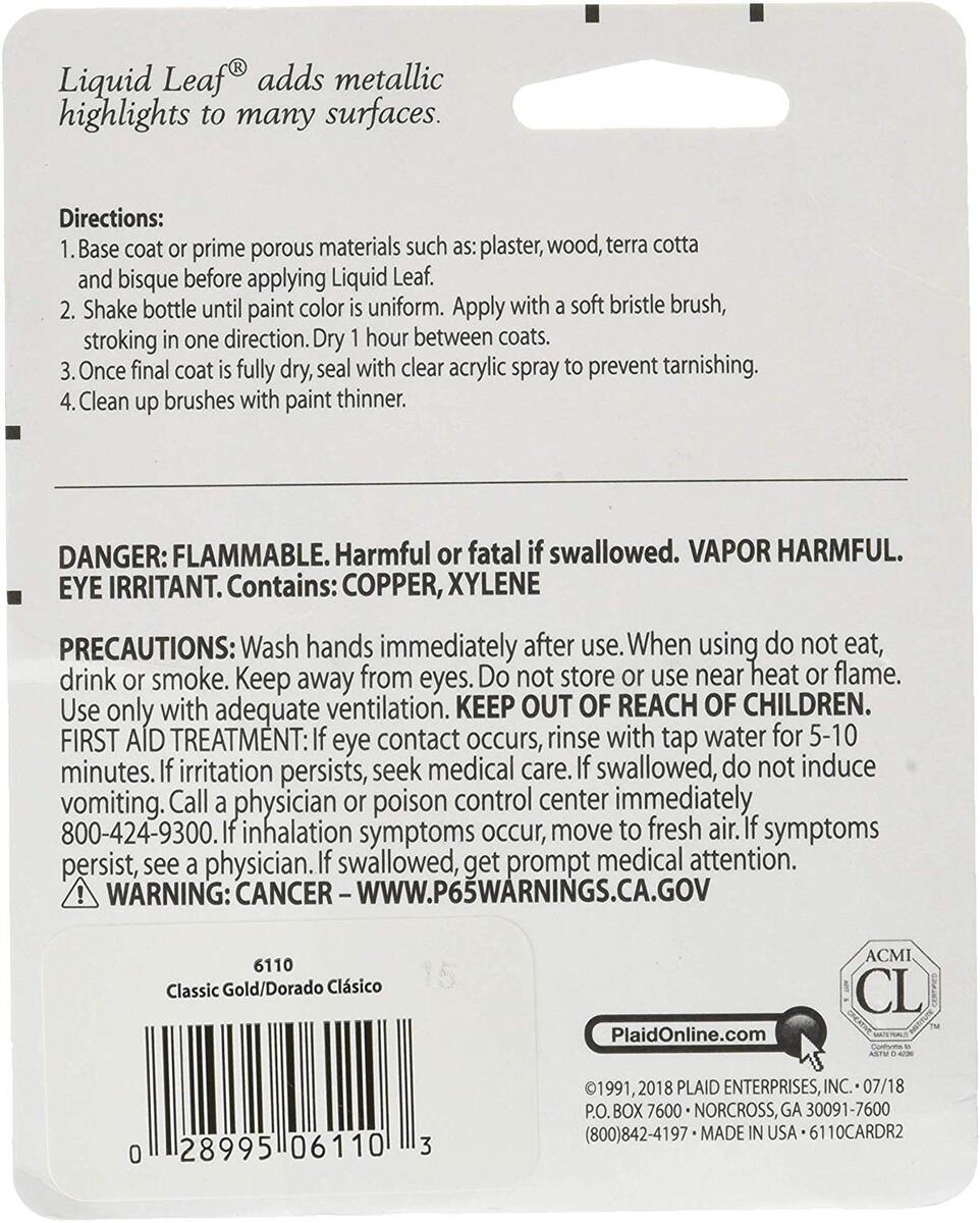 - Plaid PLAID-6110.8oz Glaze, Classic Gold 6110 :Craft Liquid One Step Leafing Pai