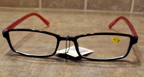 - Plastic Framed Reading Eye Glasses ~ Black/Red Frame ~ +1.75 Strength ~ K71
