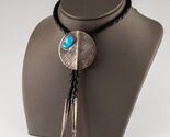 Corbata tipo bolo de plata de ley con hebras de cuero trenzado con detalles en turquesa, 36"
