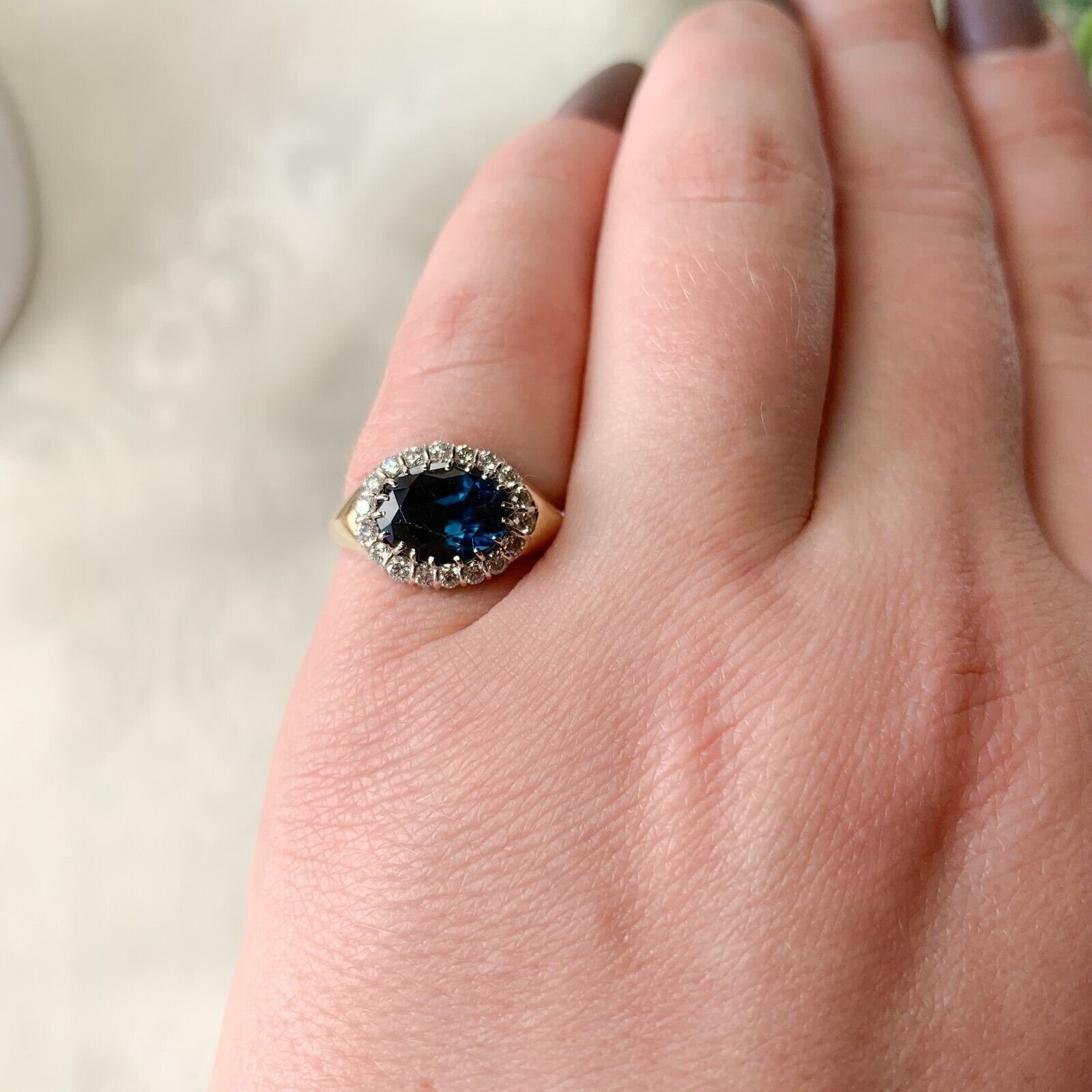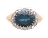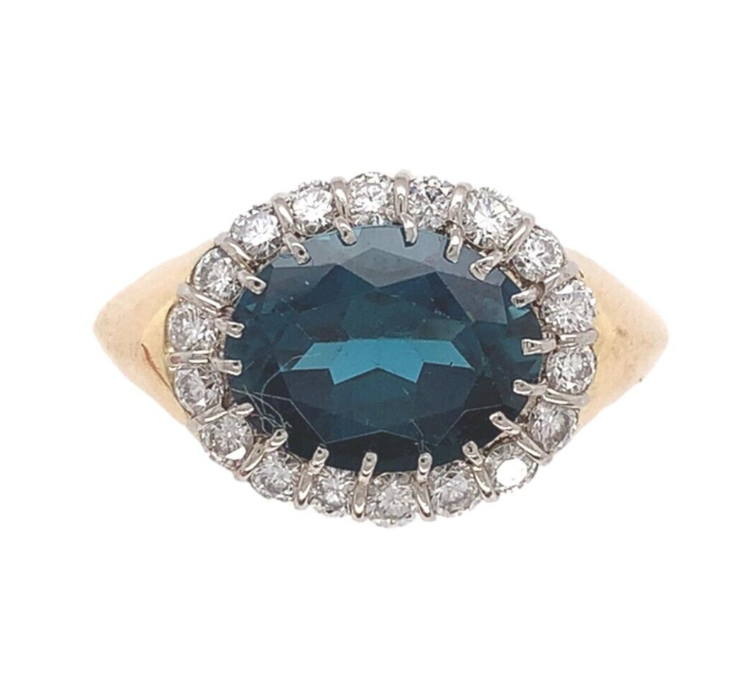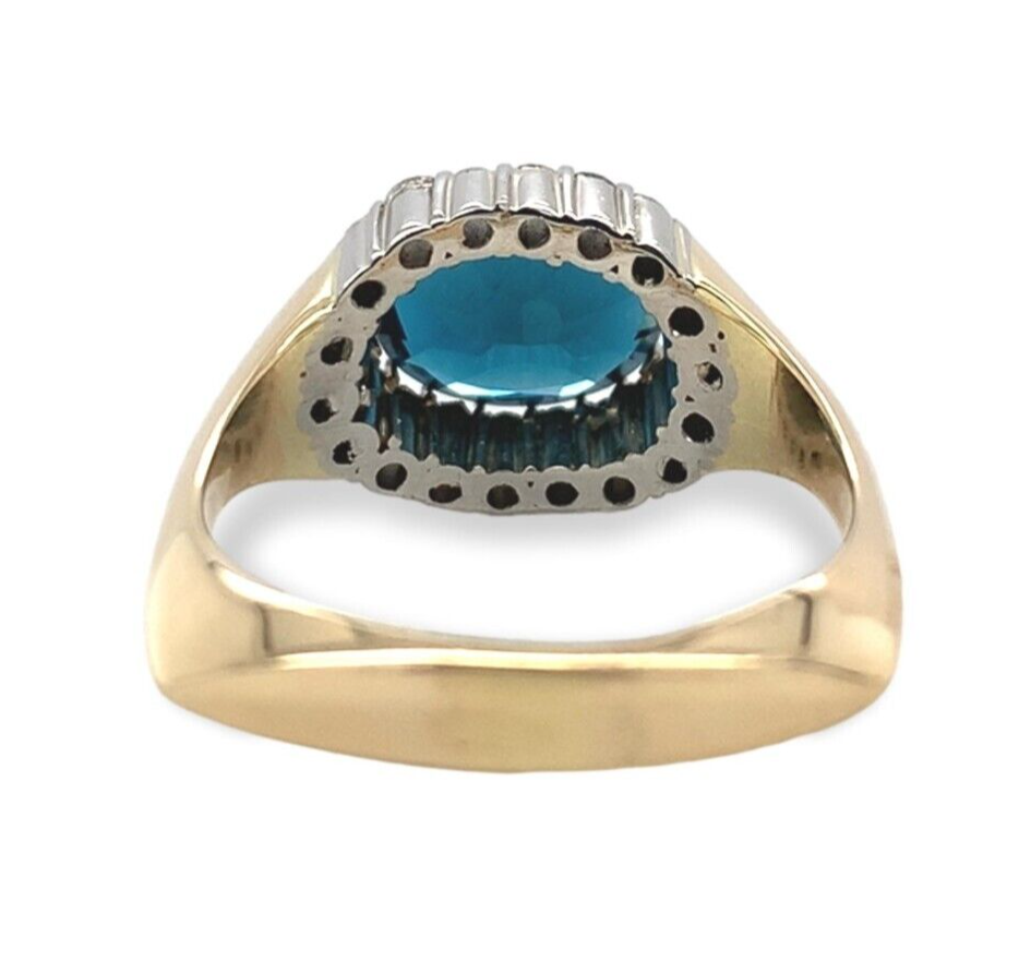 - Platinum and 18k Yellow Gold Teal Blue Genuine Natural Topaz Diamond Ring #7154