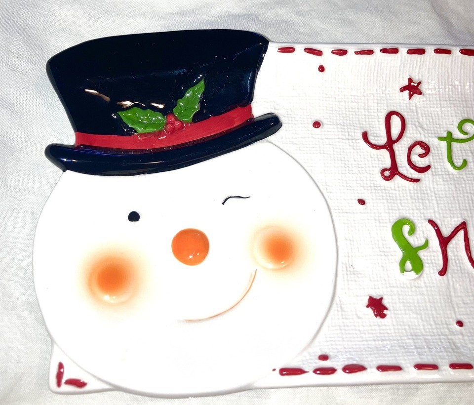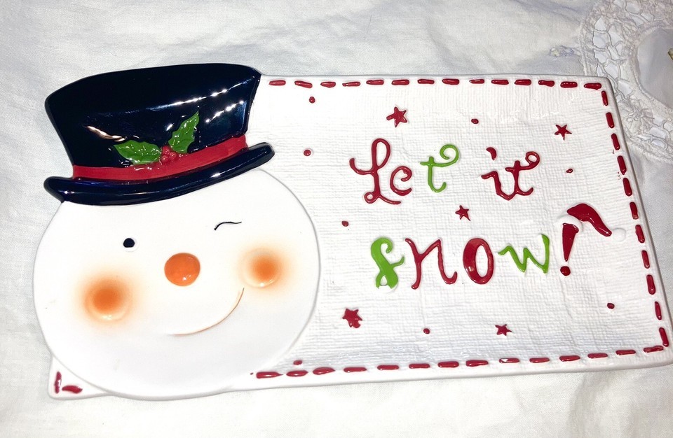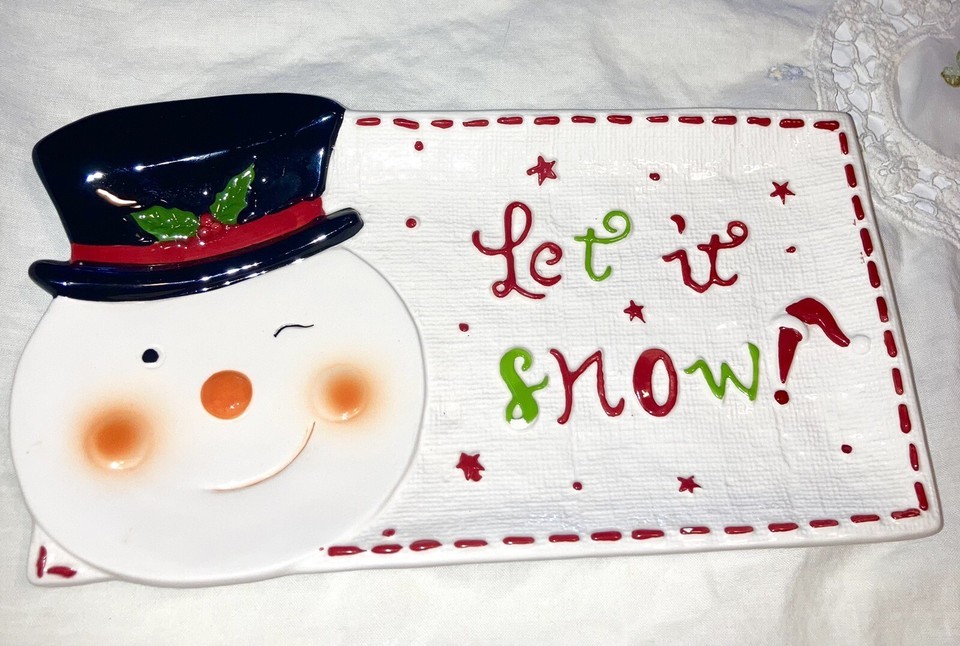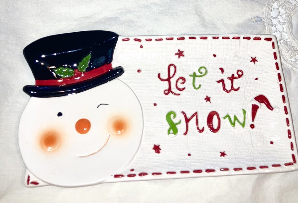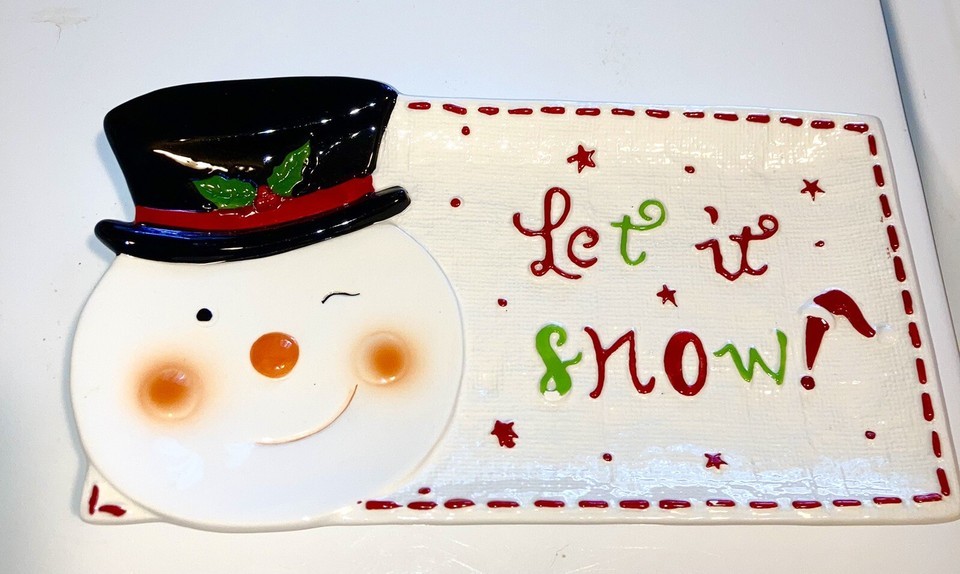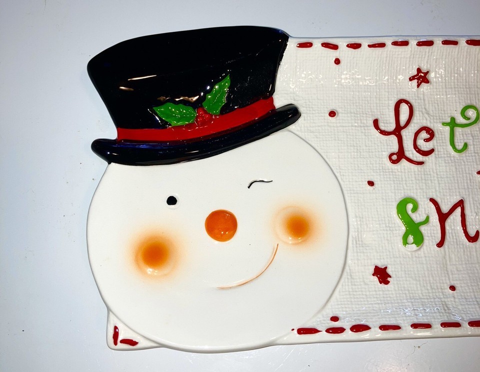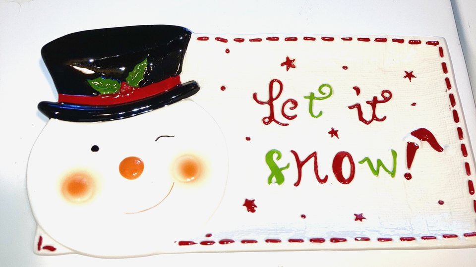 - PLATTER Let It Snow SNOWMAN Decorative CERAMIC CHRISTMAS