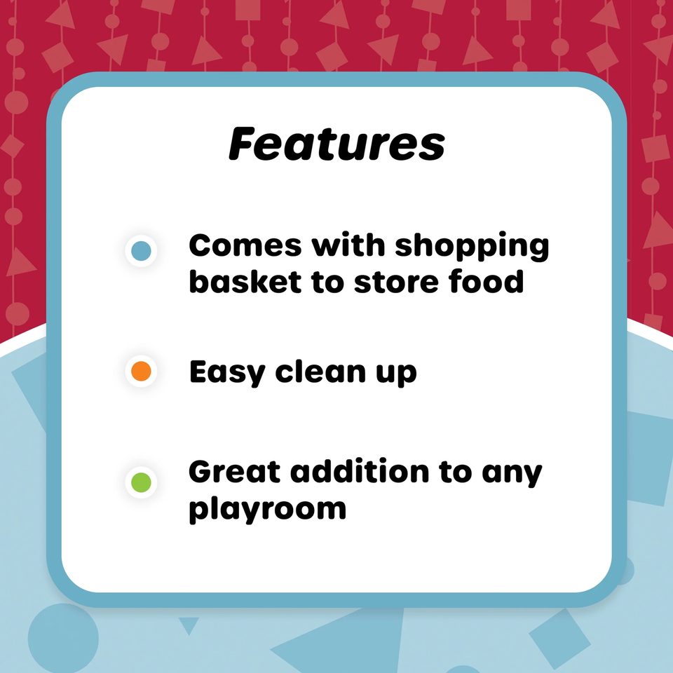Kid Connection Play Food Set includes 100 pieces Comes with shopping basket to store all the food Provides hours of active and engaging fun Children can pretend to serve a meal or shop at the supermarket Check out all the awesome toys from Kid Connection to expand your child's play se Recommended for children ages 3+