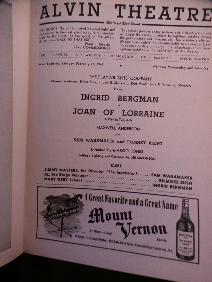 - Playbill Joan of Lorraine Ingrid Bergman Alvin Theatre Broadway, NYC Feb 1947