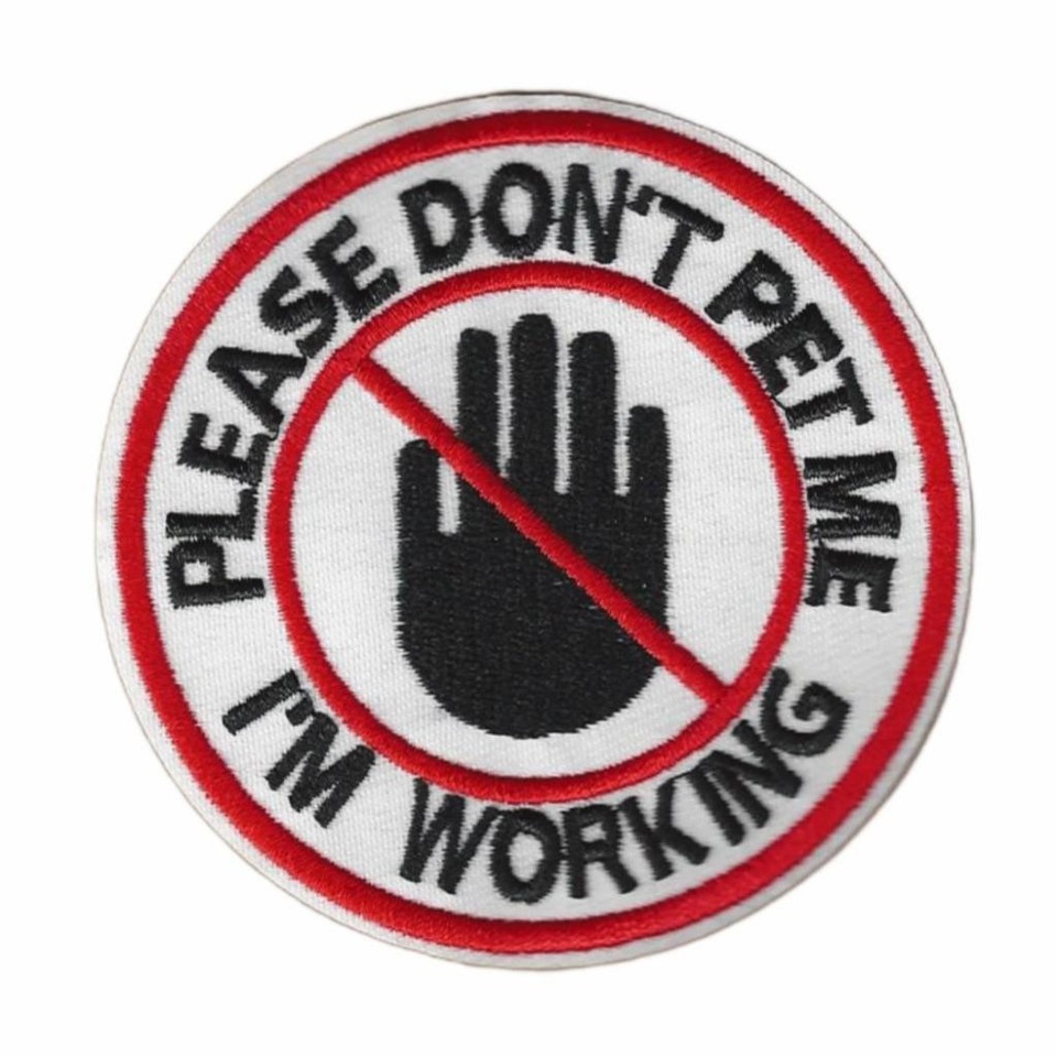 - PLEASE DON'T PET ME IRON ON PATCH 3.25" Service Dog Working Animal Embroidered