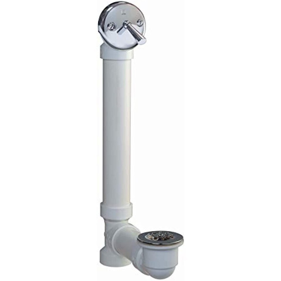 Product Description Keeney's trip lever style bath drain is a complete schedule 40 PVC bath drain for solvent weld installation. It has polished chrome exposed trim and fits all standard size tubs. This item includes all necessary hardware for the installation of one complete bath drain. From the Manufacturer Triplever Style Complete Sch. 40 PVC Bath Drain. Polished Chrome exposed trim. 1-1/2-Inch Sch. 40 pipe for solvent weld installation. Fits all standard size tubs. Includes all necessary hardware.