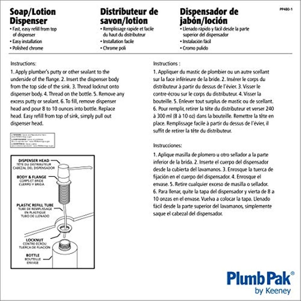 - Plumb Pak PP480-1 PlumPak Pp4801 Premium Soap/Lotion Dispenser, Chrome Plated