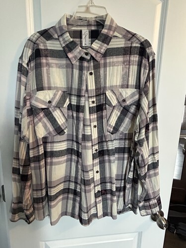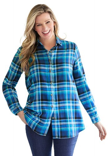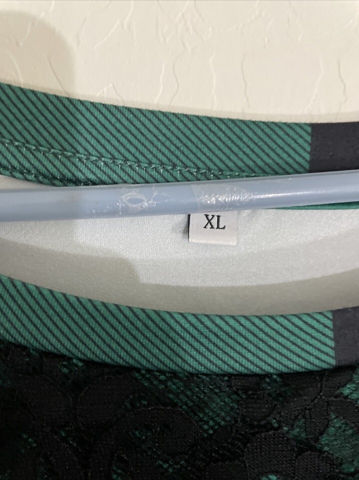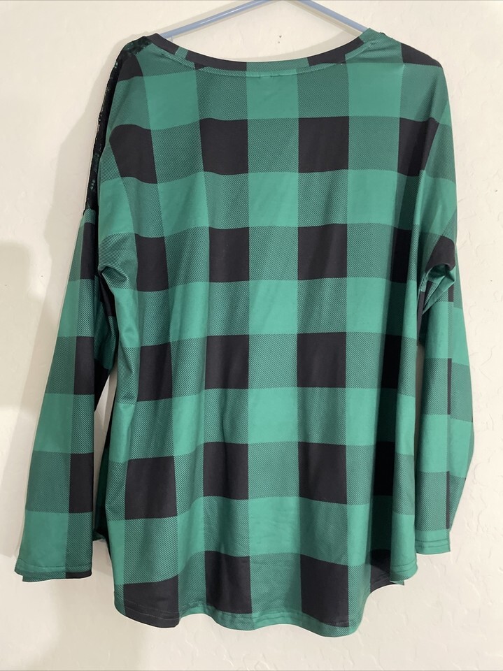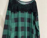 - Plus Size Green Flannel Lace Top XL Long Sleeve Top Shirt Blouse