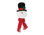 Festive red and white tones with soft plush fabric for a cozy, whimsical design Whimsical snowman head design with scarf and top hat accents for playful holiday cheer Delicate string hanger for easy display on your Christmas tree, wreath, or floral arrangement Suitable for indoor use only