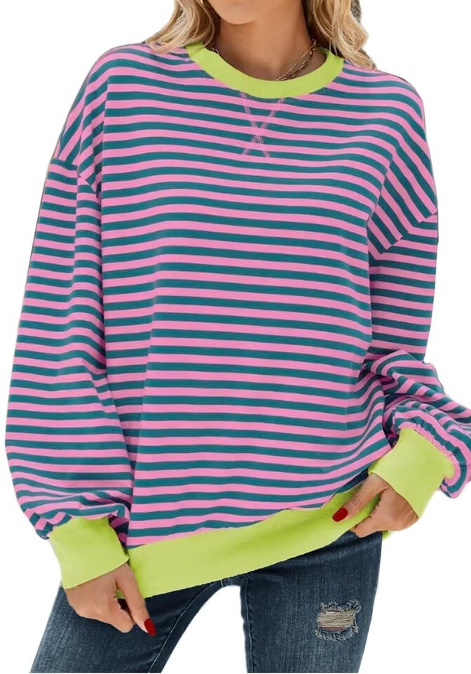 - Pmgarmi Oversized Crewneck Striped Sweatshirt Women Pink Green Size XL
