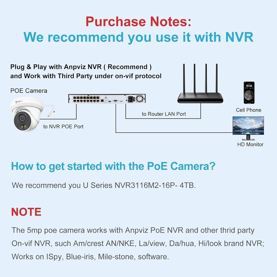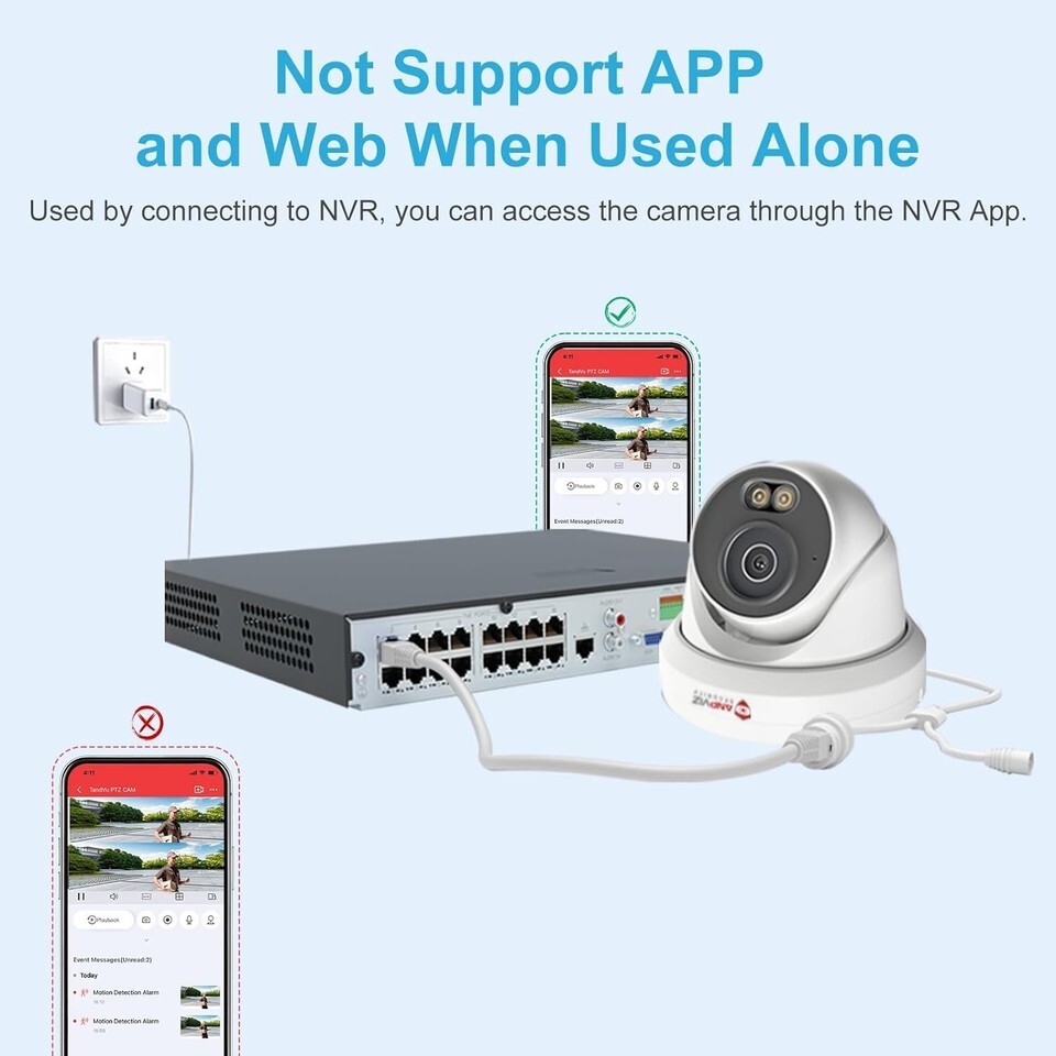 PoE Turret Cam, NVR Add-On, 5MP 110 Wide, Smart Dual-Light Color Night Vision, AI Human Detection, Built-in Mic, Full Metal , White ? ? ? ? ? ? ? ? ? ? ? ? ? ? ? ? ? ? ? ? ? ? PoE Turret Cam - NVR Add-On Key Features: 5MP HD Quality: Experience impeccable clarity with a resolution of 2880x1620@25fps, ensuring every detail is captured. 110 Wide Angle: The 2.8mm F1.6 lens provides a broad view, making it perfect for monitoring large outdoor spaces such as driveways and yards. Smart Dual-Light Color Night Vision: Advanced infrared technology offers clear black-and-white imagery up to 98ft, while integrated warm lights allow for vibrant color capture in low-light environments. AI Human Detection: Reduce false alarms with intelligent detection that distinguishes between human movement and other external triggers like animals or foliage. Durable Weatherproof: With an waterproof rating and full metal housing, this camera is engineered to withstand the harshest weather, ensuring reliable -round operation. Dual Compression: Featuring both H.265 and H.264 formats for optimized storage solutions, allowing you to save space and reduce file sizes without compromising quality. Seamless Integration: Compatible with On-vif NVR and third-party software including ISpy, Blue-Iris, and more. Also works with Synology NAS and QNAS for easy viewing on a web browser. Why Choose Our PoE Turret Cam? In a world where security is paramount, this PoE Turret Cam stands out as a trusted solution for safeguarding your property. With its advanced features?including crystal-clear video, intelligent motion detection, and robust weatherproofing?experience peace of mind like never before. Whether safeguarding your home or monitoring a business, embrace the blend of innovation and reliability. Elevate your security system with our PoE Turret Cam today and ensure that your surveillance is as sophisticated as your lifestyle. Shipping Free Fast Shipping - We offer free shipping to most of the USA with a normal delivery time of 3-7 days. However, due to the current situation, additional delivery time (up to 3 weeks) may be required for some items. Alternative Carriers - We may use alternative carriers (e.g. USPS, FedEx, UPS, etc.) to ensure your package arrives safely and on time. Due to the use of multiple carriers, we are unable to provide a tracking number automatically. Handling Time - Orders are processed and shipped within 1-2 business days of receiving cleared payment. Shipping Restrictions - Shipping to Alaska, Hawaii, Puerto Rico, Guam, and other US territories may incur shipping charges or delivery restrictions. Please contact us before ordering, or your order can be refunded/cancelled. State Restrictions - There may be restrictions based on your state of purchase. For example, certain items may not be shipped to California due to state regulations. Contact for Tracking Updates - If you require tracking updates or have any concerns about the delivery of your order, please feel free to contact us, and we will be happy to assist you. Return 30-Day Hassle-Free Returns - We want you to be completely satisfied with your purchase. If you are not, you can return the item within 30 days of receiving it for a full refund or exchange. Easy Return Process - To start a return, simply contact us and we will provide you with a prepaid return shipping label and detailed instructions. Restocking Fee - There are no restocking fees for returns. However, the buyer is responsible for return shipping costs if the return is not due to a seller's error. Refund Processing Time - Refunds will be processed within 5 business days of receiving the returned item in its condition. Payment We accept all major credit cards, PayPal, and Apple Pay for your convenience. Your payment information is secure and encrypted to ensure a safe and seamless transaction. Please complete your payment within 3 days of purchase to avoid any delays in shipping. Feedback Your feedback is extremely important to us. We strive to provide the best products and customer service possible. If you are satisfied with your purchase, please take a moment to leave us a positive review. If you have any concerns or issues with your order, please contact us before leaving negative feedback. We are committed to resolving any problems and ensuring your satisfaction. Contact Us If you have any questions or concerns, please feel free to out to our customer support team. You can contact us through the messaging system. We are available Monday to Friday, 9:00 am to 5:00 pm EST, and we will do our best to respond to your inquiry within 24 hours. Buy it now and enjoy a pleasant shopping experience! UPC: NA Features: Waterproof,does not apply,AI Human Motion Detection,Built-in Mic,NDAA Compliant,Dual H.265/H.264 Compression,Full Metal Housing,4000V Lightning Protection,Wide Angle Connectivity: Wired,PoE,Onvif,ISpy,Blue-iris,Mile-stone,Synology NAS,QNAS Storage Capacity: does not apply Compatible Brand: does not apply Smart Home Protocol: does not apply Smart Home Compatibility: does not apply MPN: T8E00 Items Included: Camera,Instruction Manual Power Source: Corded Electric Manufactured: does not apply Operating Range: does not apply Type: 5MP Turret Cam Maximum Resolution: 2880x1620 Location: Outdoor Number of Cameras Included: 1 Color: White Color Mode: Color