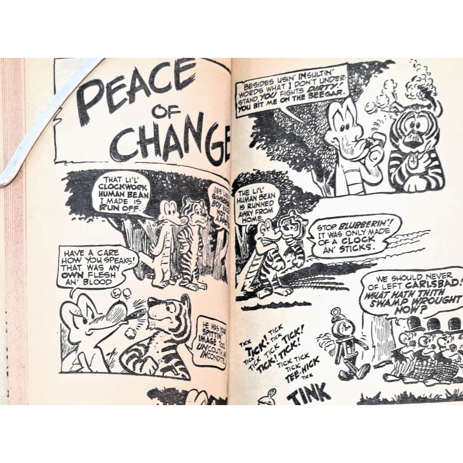 Walter Crawford Kelly, Jr. (1913-1973) was named Cartoonist of the Year by the National Cartoonists Society in 1952. Pogo remains one of the world's most popular comic strips. A collection of comic strips by the immortal Walt Kelly featuring characters that lived in the Okefenokee Swamp in Georgia. Often a vehicle for political commentary, Kelly made famous the revised Commodore Perry quote "We have met the enemy, and he is us."