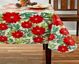Poinsettia Flowers Tablecloth 60 x 84-in PEVA Green Red White Holiday Gift NIP
