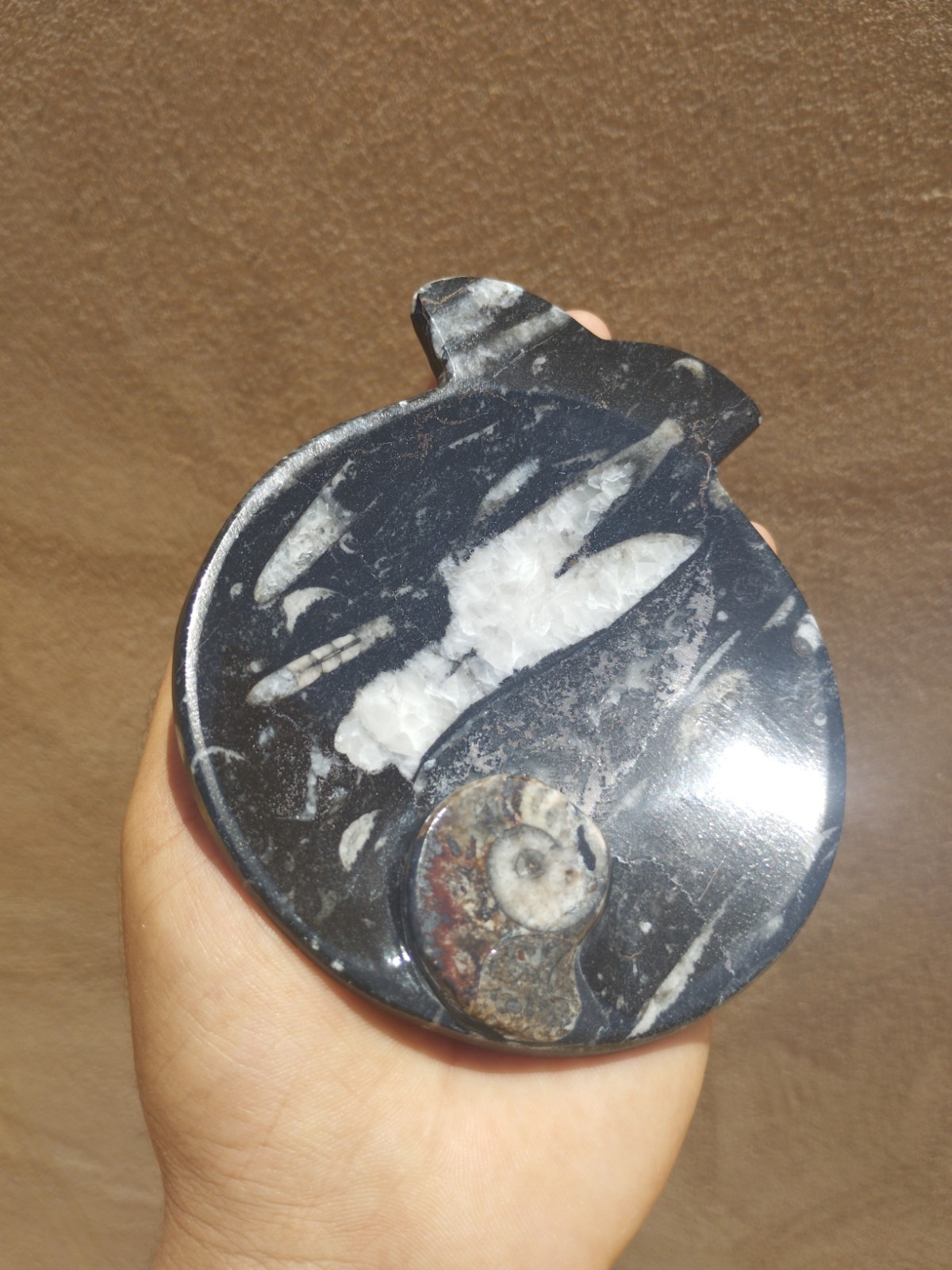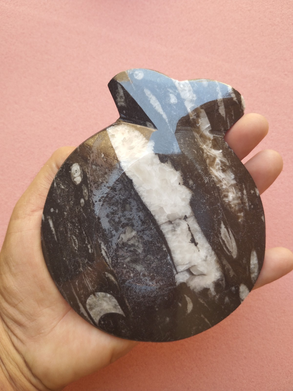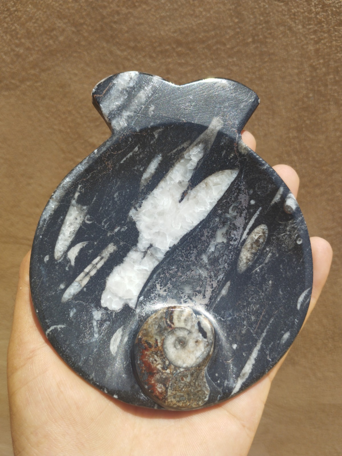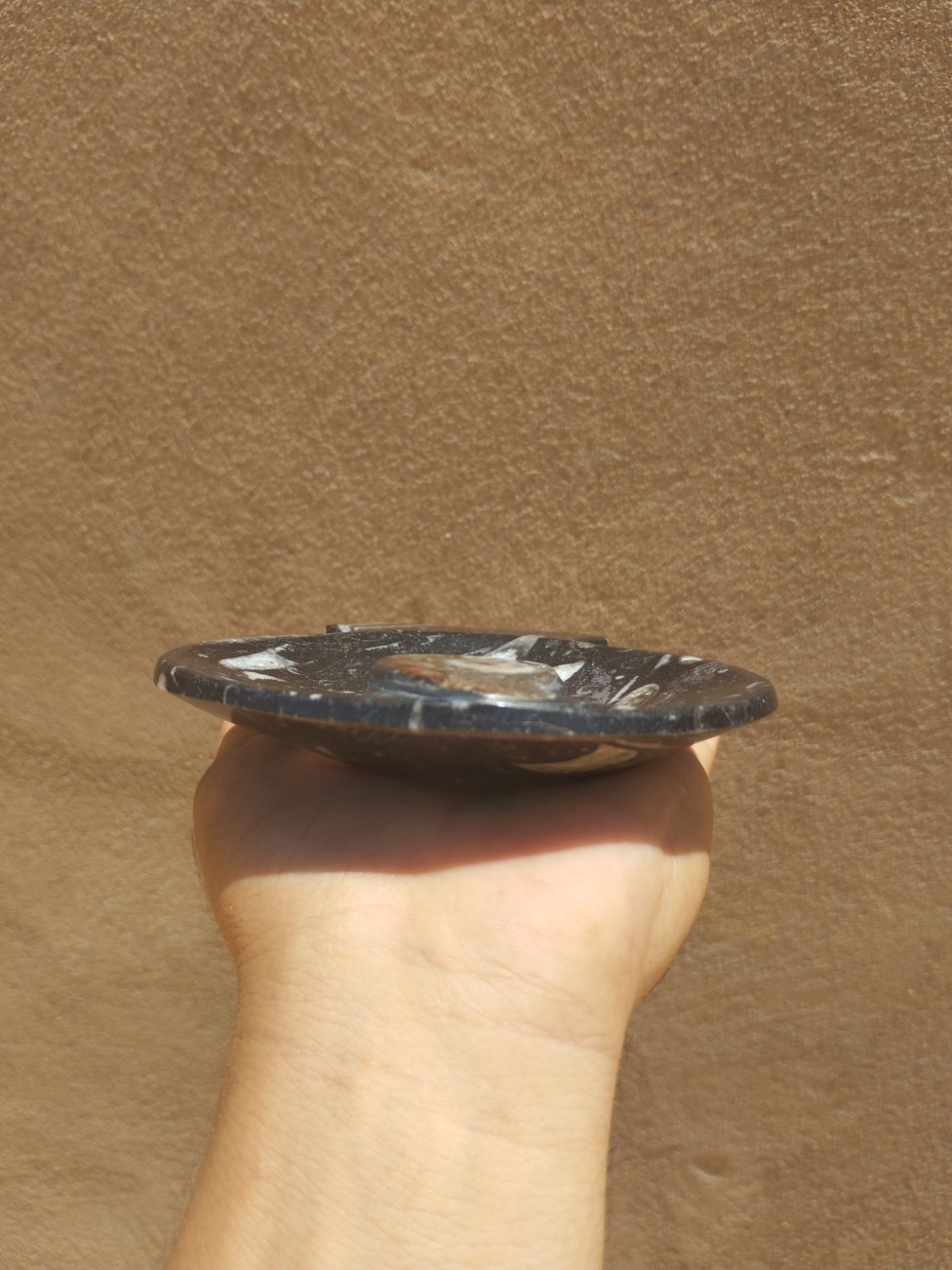 - Polished Orthoceras Fossil Bowl Devonian Period Morocco Handmade Stone Dish