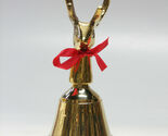 POLISHED SOLID BRASS REINDEER HEAD CHRISTMAS HAND BELL DINNER BELL w/ RED BOW