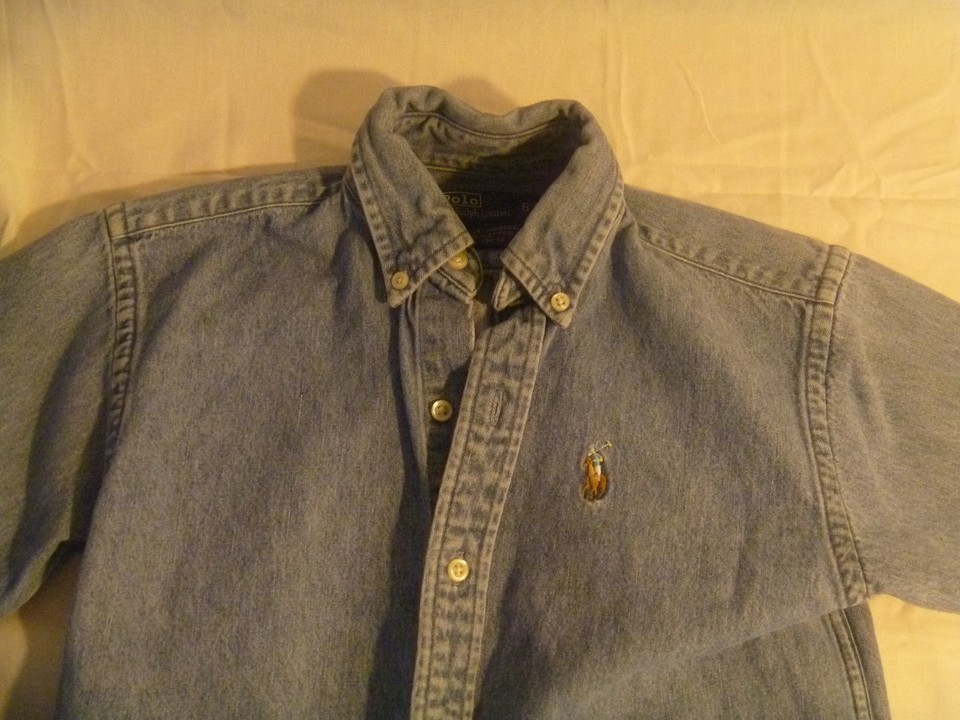 - POLO RALPH LAUREN DESIGNER BLUE JEAN SHIRT 100% COTTON BLUE YOUTH BOYS SIZE 6