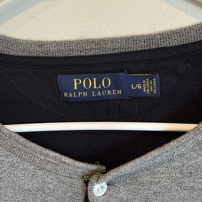 - Polo Ralph Lauren Men's Long Sleeve Henley Thermal Gray L 100% Cotton EUC Read