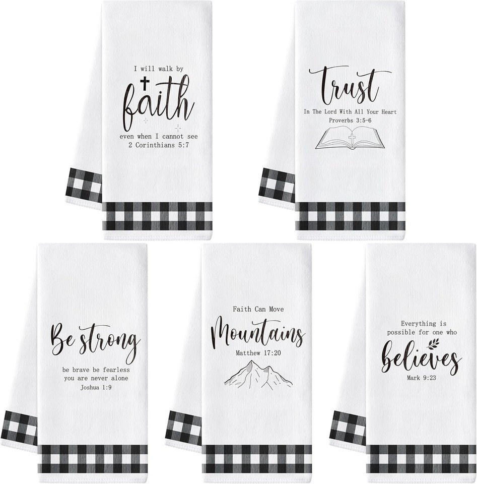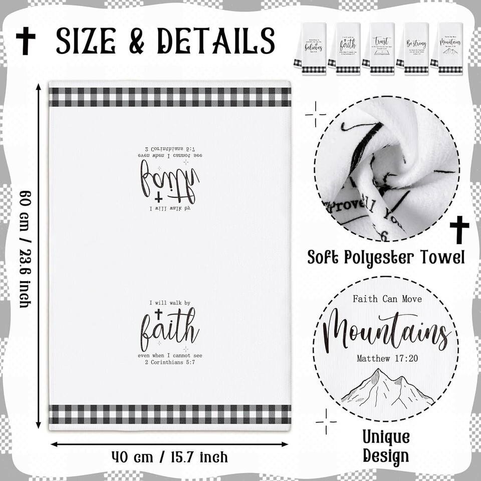 Embrace both functionality and inspiration with this beautiful set of 5 high-quality Christian kitchen towels. Each towel measures 14.6 x 27.7 inches, designed not just to absorb but also to uplift your spirit.