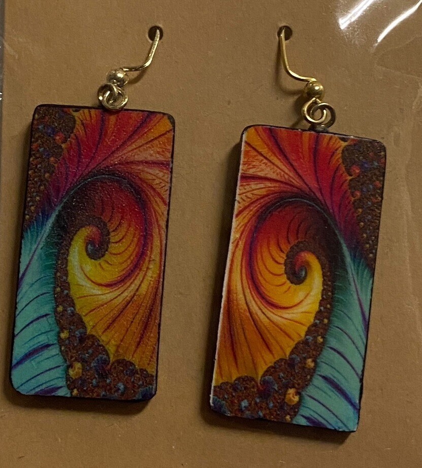 - Polymer Clay Handmade Dangle Earrings French Ear Wire Swirl Wave Festival Gift