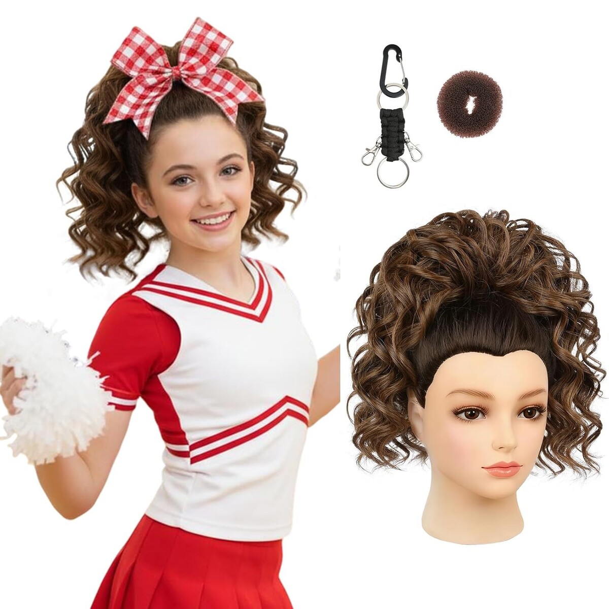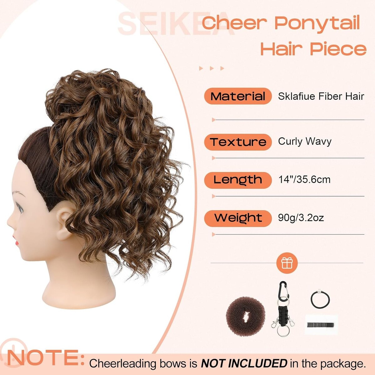 - Ponytail Hair Piece Cheer High Curly Wavy Pony Extension 14" Medium Brown