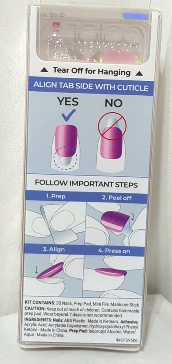 Get salon-perfect nails in minutes with the KISS imPRESS Color FX ?Pop Star? press-on manicure set! These gorgeous pink iridescent nails shimmer beautifully under any light, giving you an instant glam look with no mess and no dry time.