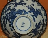 Porcelain Bowl 4.5" White w Cobalt dark Blue boys chasing butterflies Japanese