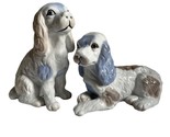 Charming porcelain dog figurines featuring a delightful blue and brown color scheme. Perfect for adding a touch of elegance to your home decor. From Loire Valley, France.