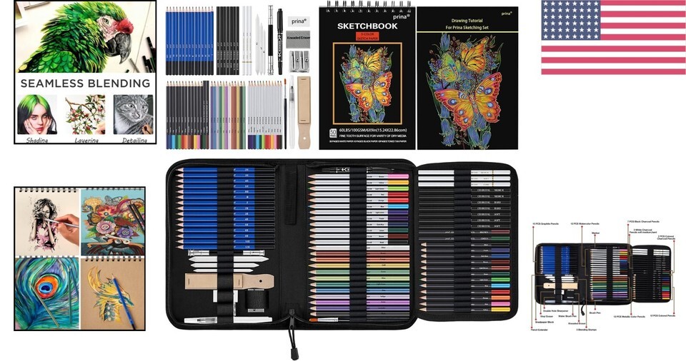 Title: Prina 76 Pack Drawing Set Sketching Kit