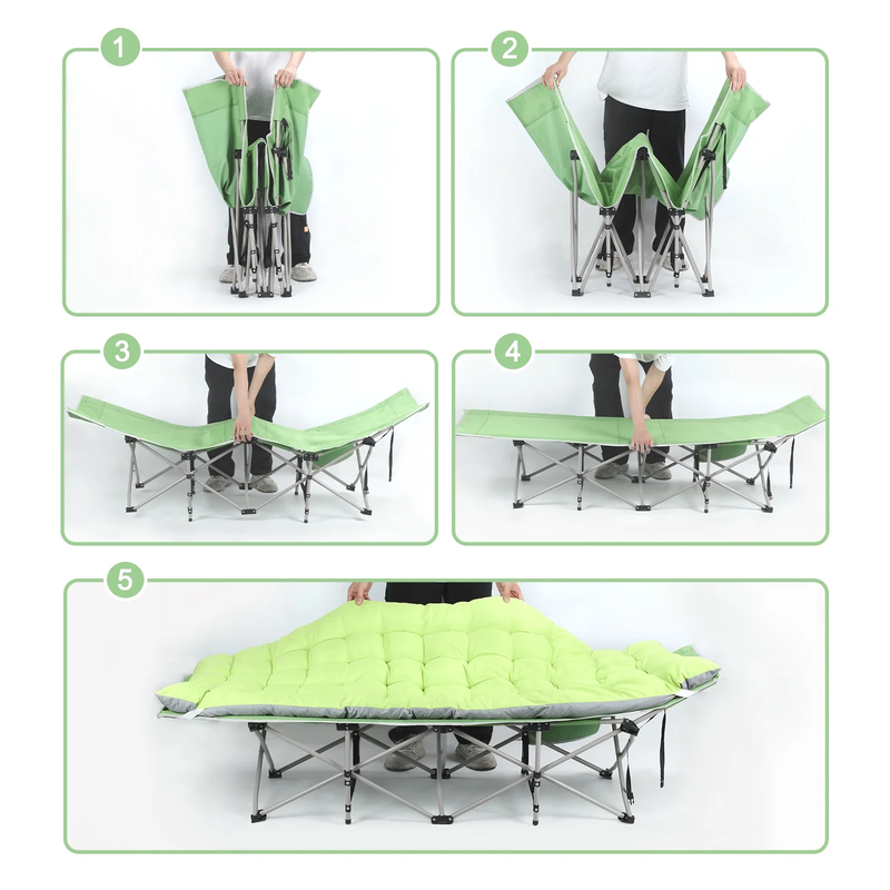 Portable Camping Cot with Mattress, Folding Sleeping Cot Heavy Duty Fold up Camp Bed, Green