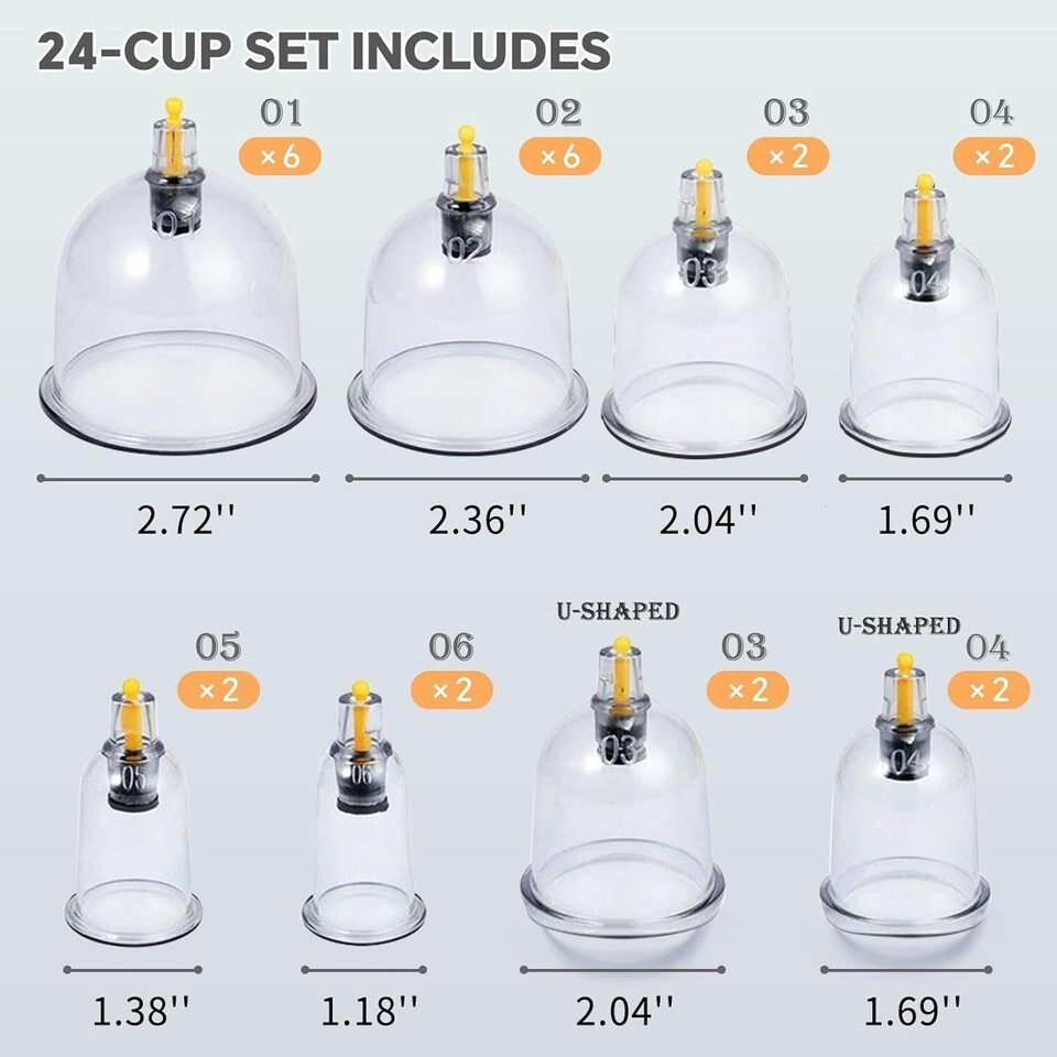 - 24 Adjustable Cups for Pain Relief and Wellness
