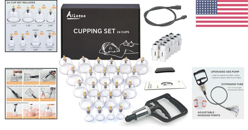 - Portable Cupping Therapy Kit - 24 Adjustable Cups for Pain Relief and Wellness