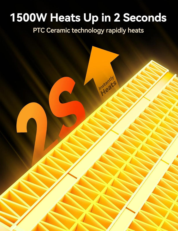 Quiet and fast heating: The noise this ceramic heater makes is lower than 45 decibels, quiet enough for most people to use in a bedroom while sleeping. With PTC ceramic heating tech and high speed fan, this heater put out tons of heat to heat up 200 square feet in seconds