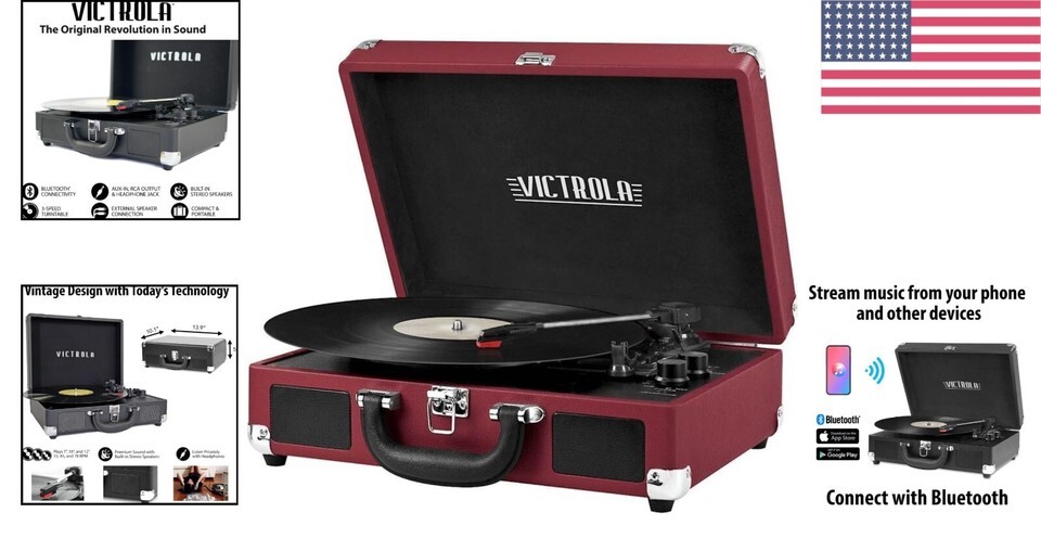 - Portable Marsala Bluetooth Record Player with 3-Speed Turntable for Music Lovers