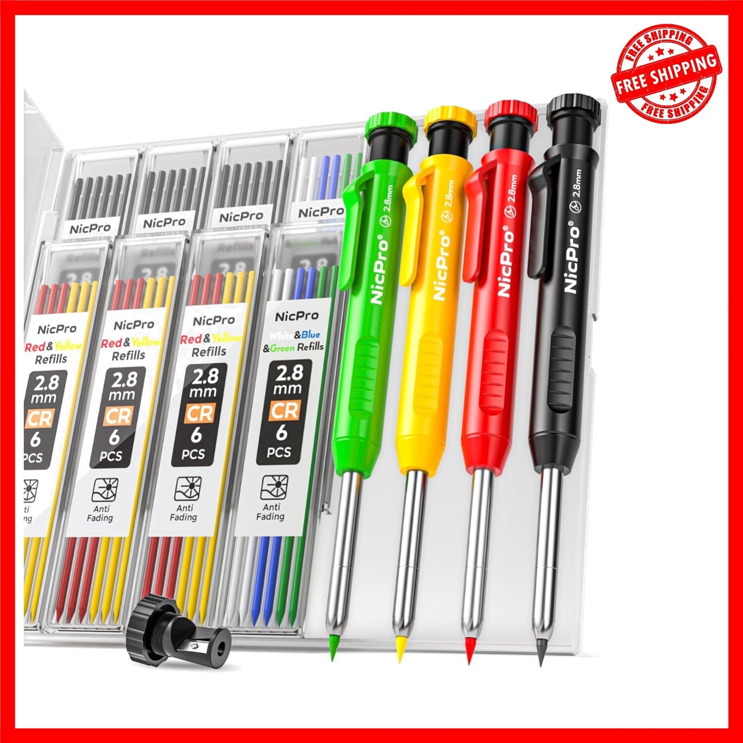 4 pack solid carpenter pencils with 52 pieces of 2.8 mm refills.
