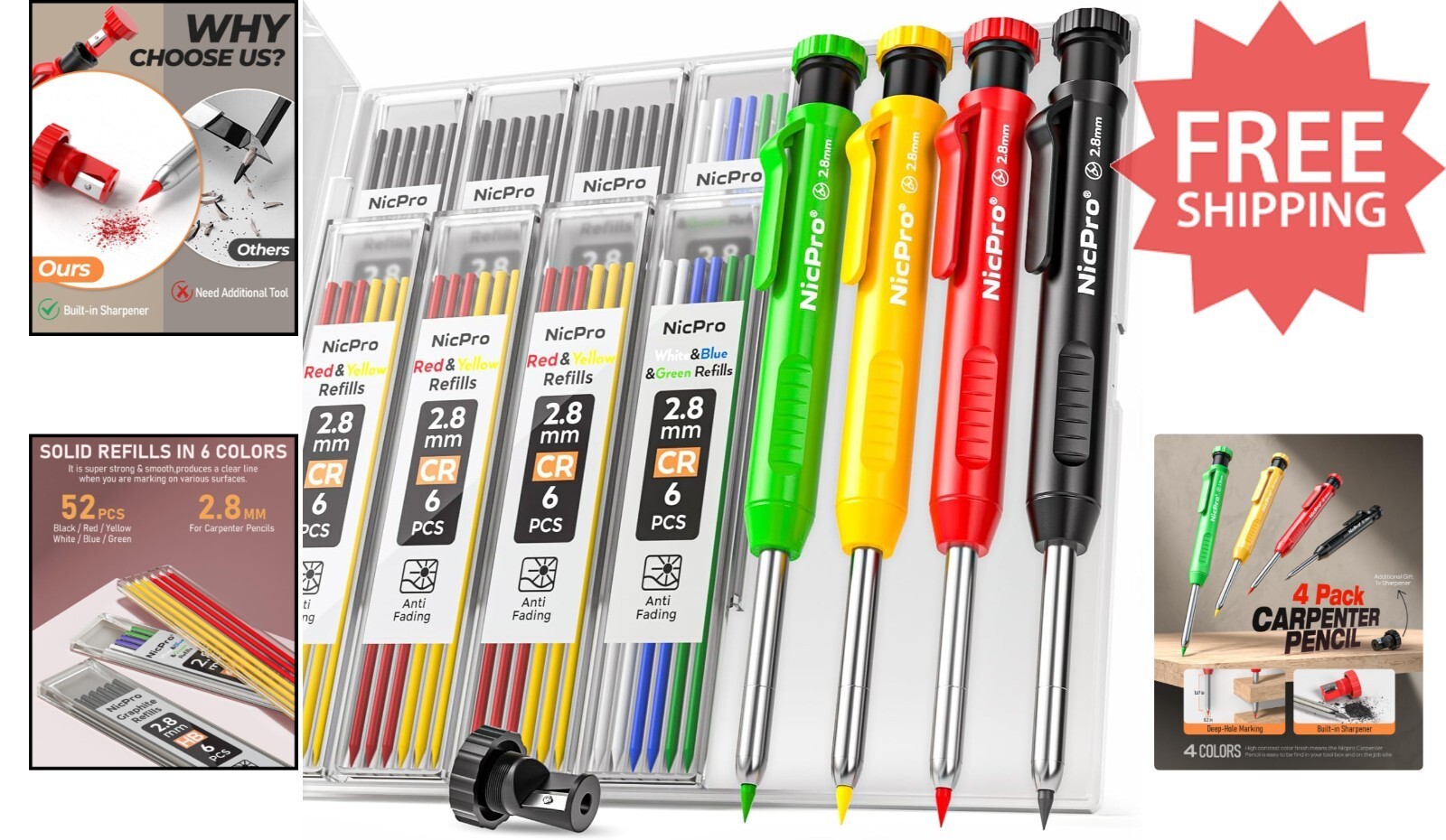 Elevate your woodworking experience and ensure you are always prepared for any marking task. Order your Portable Carpenter Pencil Set today and work with unmatched confidence!