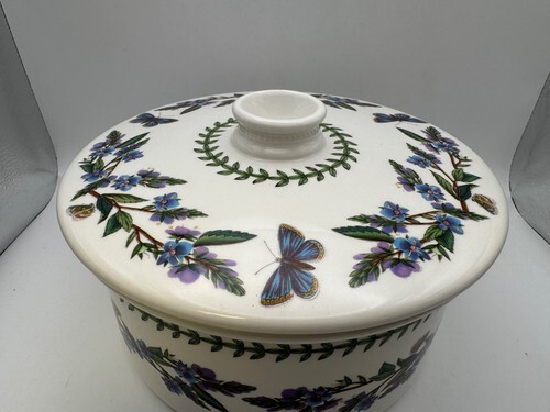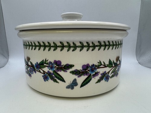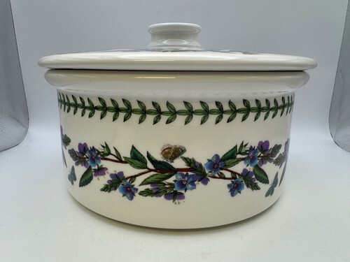 - Portmeirion BOTANIC GARDEN Speedwell Round Covered Drum Casserole / Souffle Dish