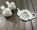Portmerieon Floral Bird Salt Pepper ShakersTeapot Spoon Rest Ceramic Kitchen
