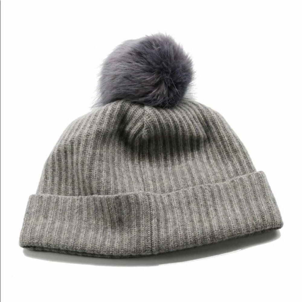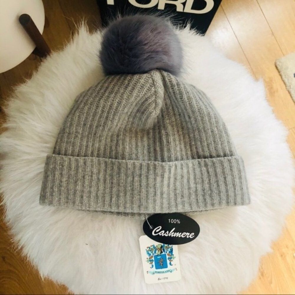 - Portolano Cashmere & Faux Fur Pompom Beanie Hat, Gray, One Size, Luxurious, NWT