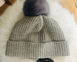Portolano Cashmere & Faux Fur Pompom Beanie Hat, Gray, One Size, Luxurious, NWT