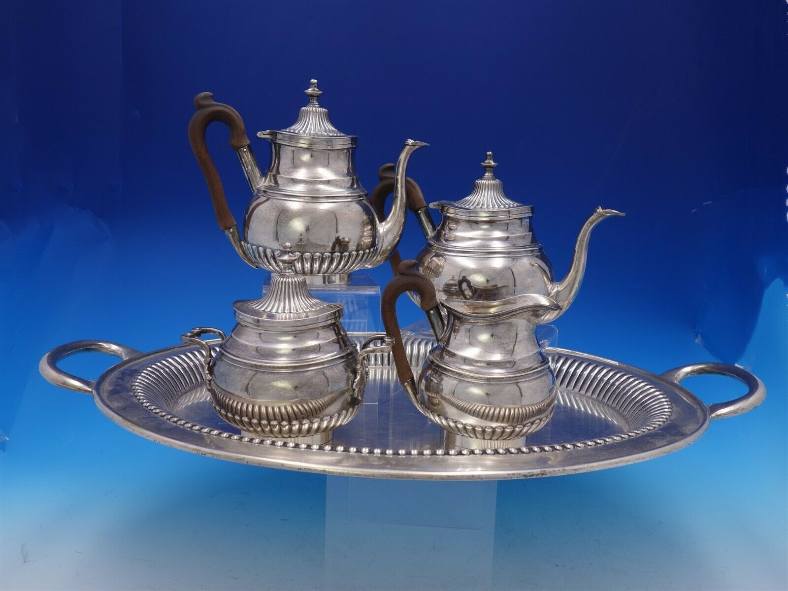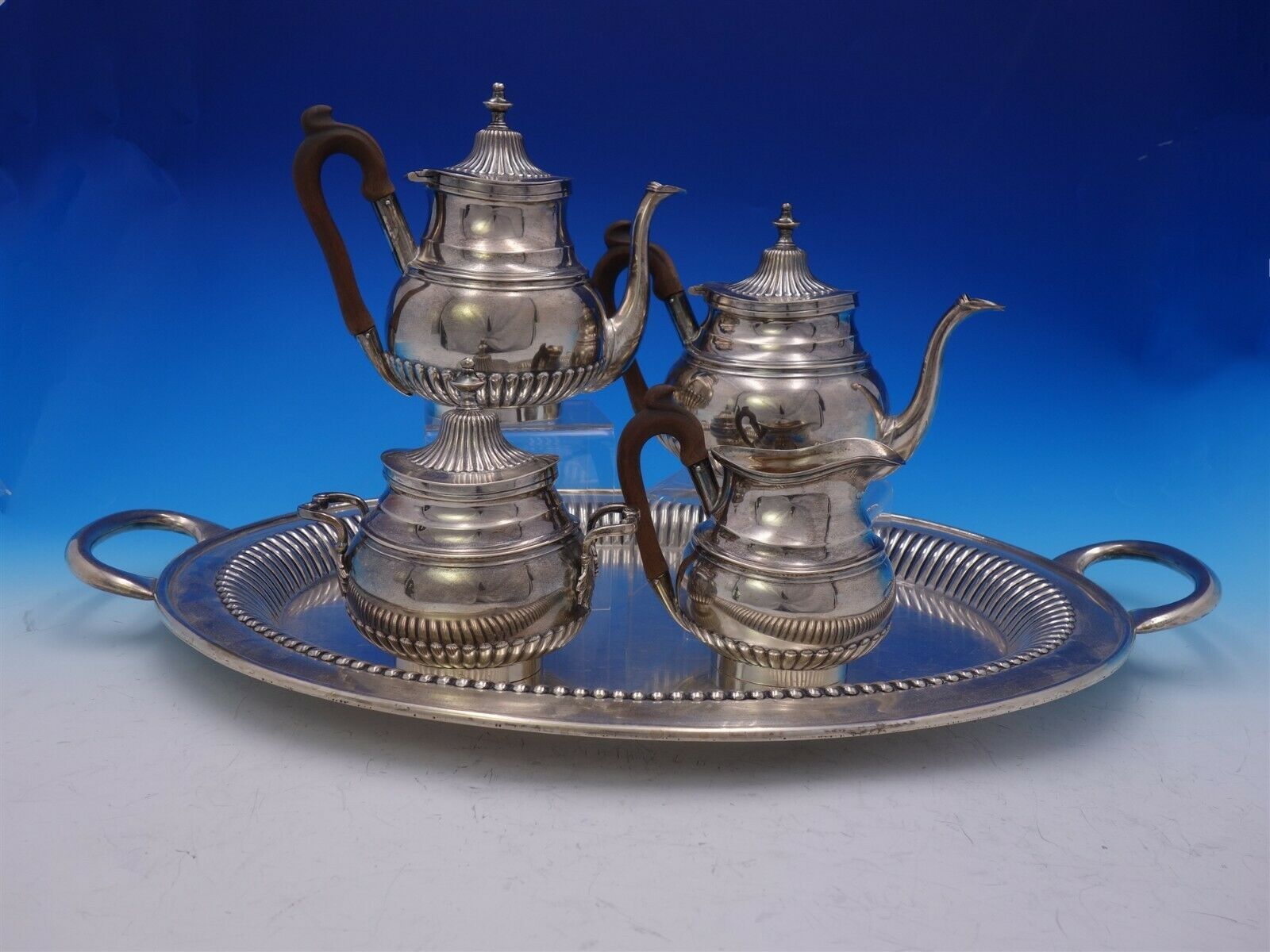 - Portuguese .833 Silver Tea Set 5-Piece with Fluted / Ribbed Design (#3688)