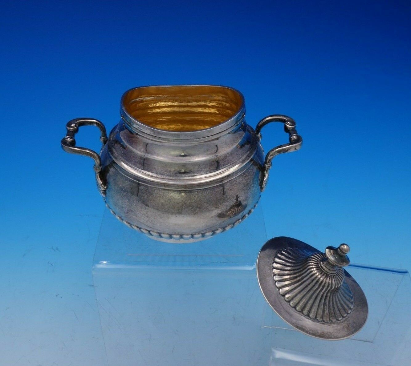 1 - Sugar Bowl (with lid): Measures 6 1/4" x 4 1/4" x 6" tall and weighs 14.89 troy ounces.