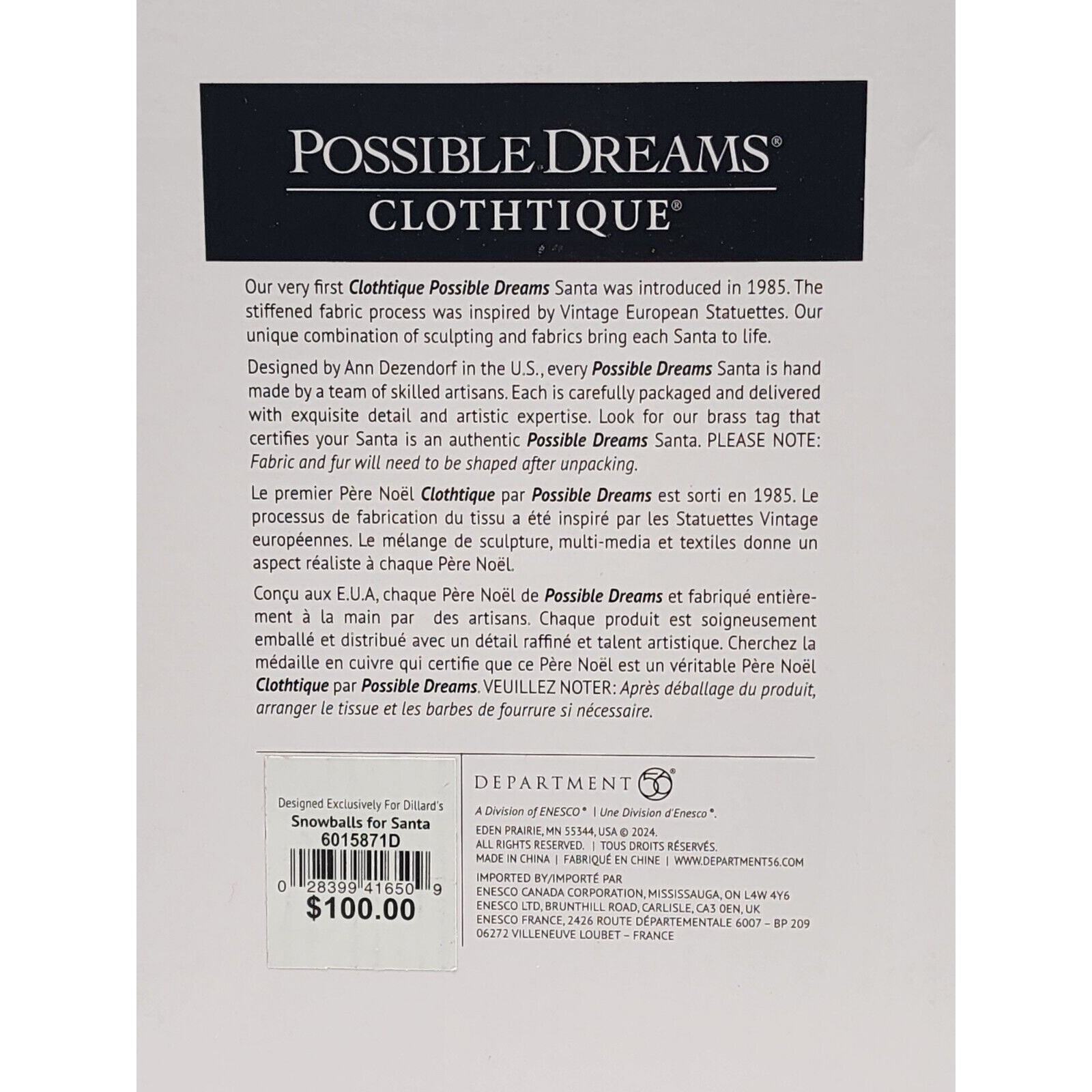 - Possible Dreams Snowballs For Santa 6015871D Dept 56 Clothtique Brand New In Box