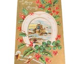 - Postcard Christmas White Lucky Horseshoe with Scene Inside Embossed 1909 Posted