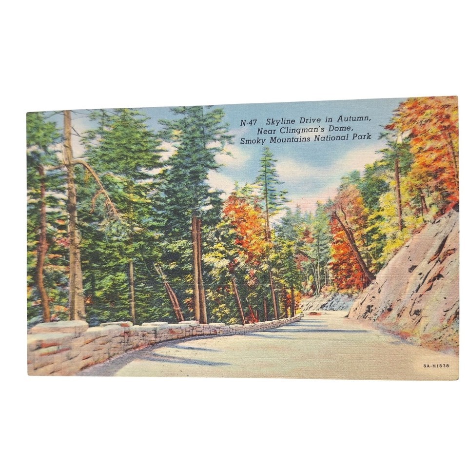 - Postcard Skyline Drive In Autumn Near Clingman's Dome Smoky Mountains Linen
